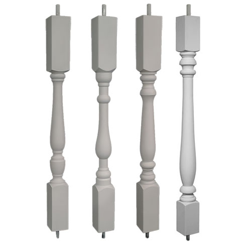 Also called Urethane Balusters. Actual Width: 2 1/2″. Specify length. Recommended On Center spacing is 5 1/2″. Urethane balusters are reinforced with an internal PVC pipe for strength and rigidity. Cut our Poly spindles using normal woodworking techniques. Use with 3 5/8″ Poly Rail System OR the 4 1/2″ Poly Rail System.