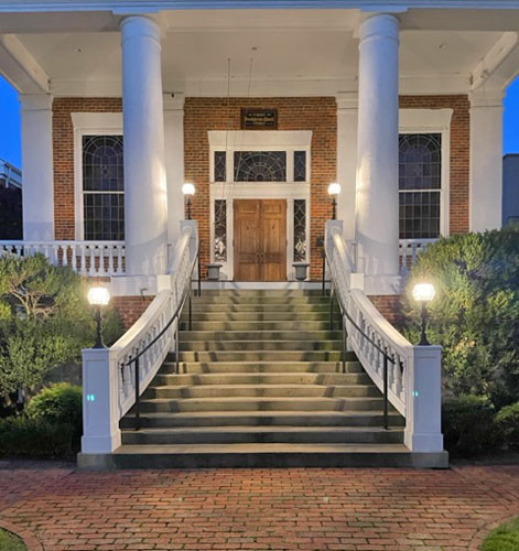This front porch railing can be custom curved to any radius for stairs or flat balconies. Read THIS ARTICLE on how to measure for curved rail, then email or call for a quote.